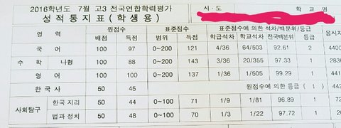 내신 상승세를 팍 타니까 담임이 날 좀 신경쓰기 시작함ㅋㅋㅋ 거기다 솔직히 이건 망해도 할 말이 없다 했던 준비 1도 안한 7모를 대박침ㅋㅋㅋㅋㅋ (이게 아마 표준점수 기준 1년 중 제일 잘본 모의고사일거야) 이제 욕쟁이 할매 날 약간 풀어준다고 해야하나 상담도 더 자주하고 기대를 받는 티가 났음