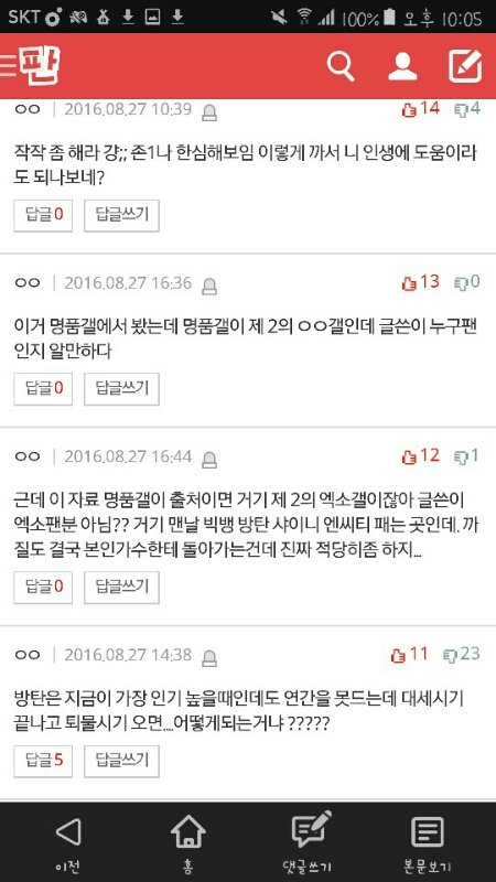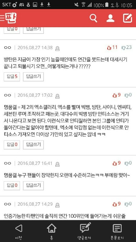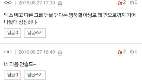 톡선이였는데 쟤네 연간글이였음 근데 ㅁㅍㄱ 출처라고 엑소팬 ㅈㄴ팼는데 ㅁㅍㄱ에 글올렸던건 유우명한 빛이니팬 풉