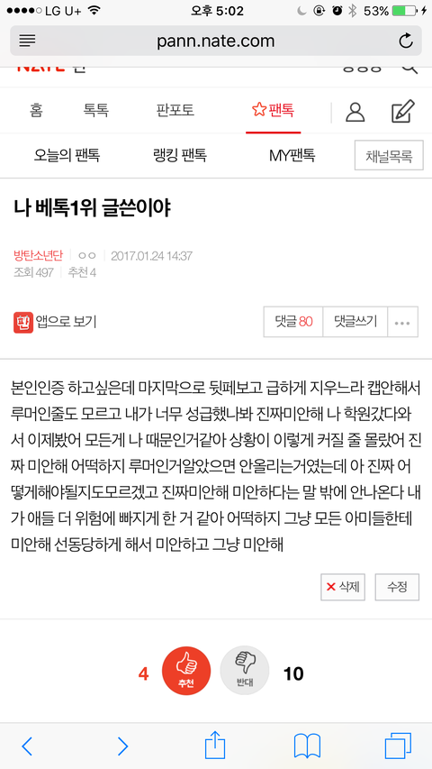 내가 베톡1위 글쓴인데