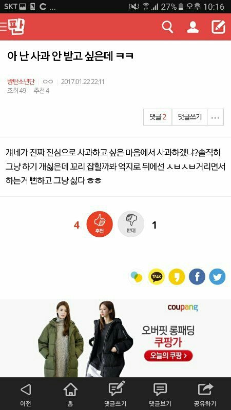 이사진 그때 어떤 앙밍가 사과받기싫다면서 이짤 올리고 갔던거같은데 여기보면 자기들 사과받으려고 먼저 사과하는거다 심지어 뺨맞는거에 비유하는데 추천보면 다 그렇게 생각함 근데 지금은 5월꺼 사과받아야하잖아 사과하자!이러고있냐 우리 그리고 이미 사과했눈뎅
