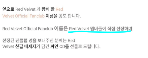 장난으로 웃긴거나 뻔한 거 보내지말고 뭔가 레드벨벳과 팬들 사이만에 특별하고 유대감이 생길만한 그런 이름 생각해서 보내보자~