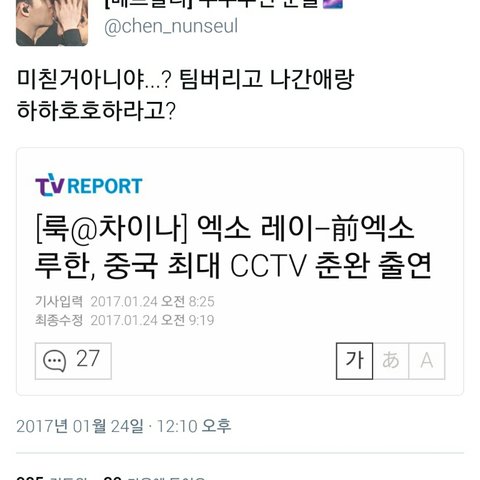 웃창 루머글 보고 댓글로 엑소엘 싸잡아 욕했으면서