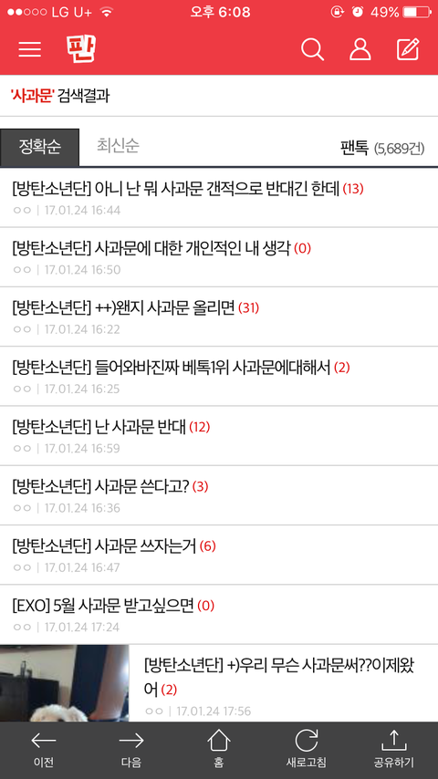 팬톡 검색 보기