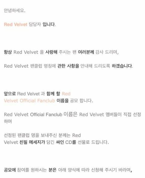 스엠이 드디어 레드벨벳 공식팬명을ㅜㅜ