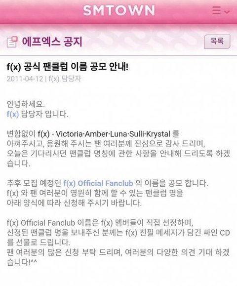 좋긴한데 설레발 ㄴㄴ..... 에프엑스도 이래놓고 5년 후에 팬덤이름 발표함..