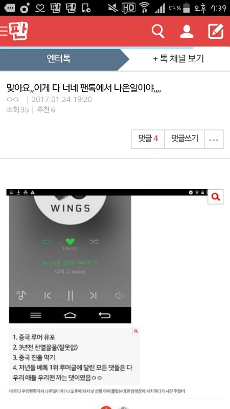 오늘의 팬톡