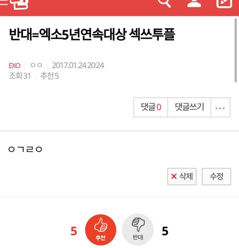 야 엑소 쎅스투플 5년연속대상각이다