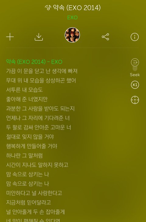 엑소 수록곡인 약속과 꿈 작사를 딱!!