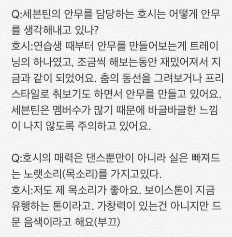 ㅋㄱㄲㅋ진짜졸귀야 자기도알아서다행이다ㅎㅎ.. 나도진짜갠적으로 세븐틴 내 노래할때 가장좋은애가 호시ㅎㅎ..진짜음색? 개젛아ㅜㅜㅜㅜㅜㅜㅜ먼가섹시.. 맨마지막부끄가킬링임ㅋㅋㄱㅋ