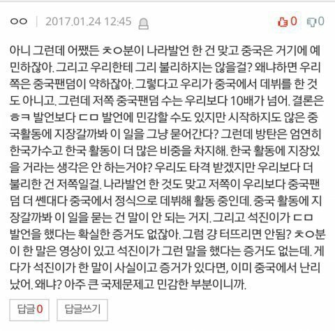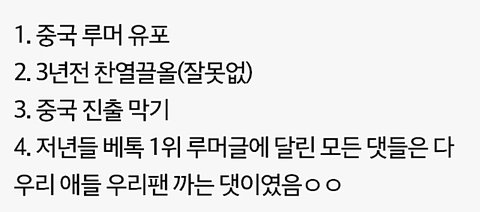 -저쪽 ㄷㅁ발언이 문제든 아니든 잘못없는 찬열이 끌올, 중국 진출 막겠다는 개소리부터가 ㅈ같음