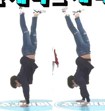 특히 렉켄 진 스니커즈 신고 물구나무 서서 걷기