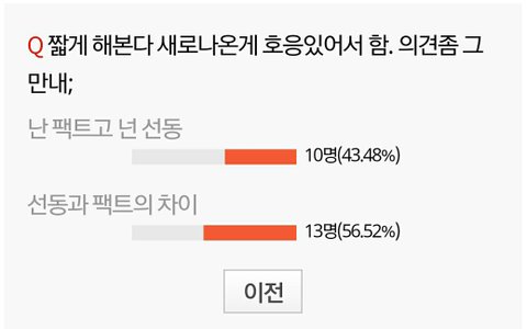 위의 투표 결과에 따라 실트 해쉬태그는 #선동과_팩트의_차이로 결정되었습니다. 실트 총공은 저녁 6시 반부터 시작되니 시간에 맞춰 총공에 참여해주시고 해쉬태그가 포함된 멘션을 되도록 많이 알티 해주시기 바랍니다.