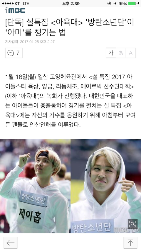 아1육대 우리애들 기사