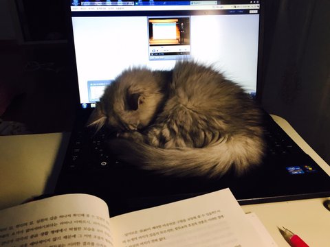 공부하려고 노트북키면 어느새 폴짝하고 잠자구