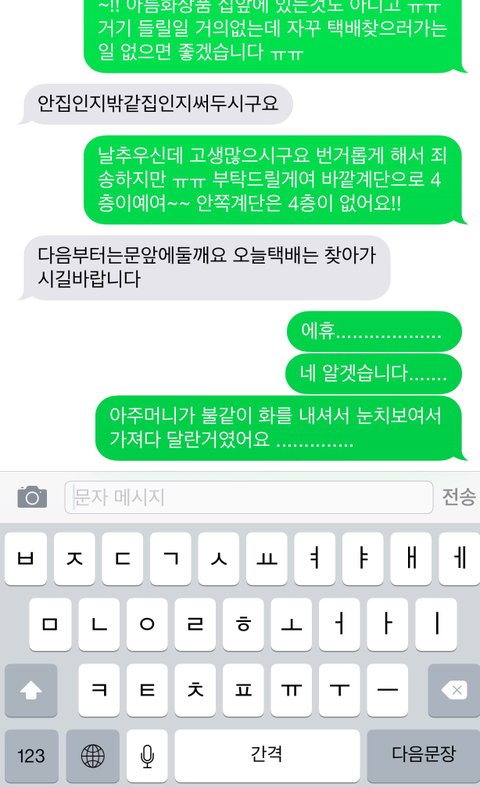 다른택배사는 부재중이면 집앞에 두고 가시는데...