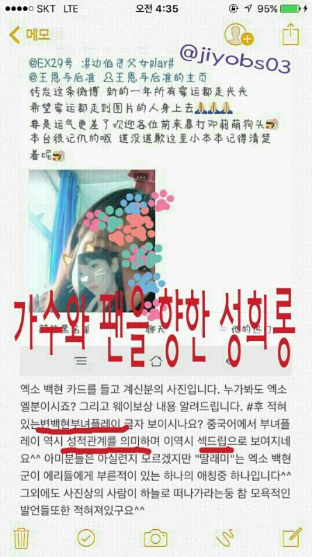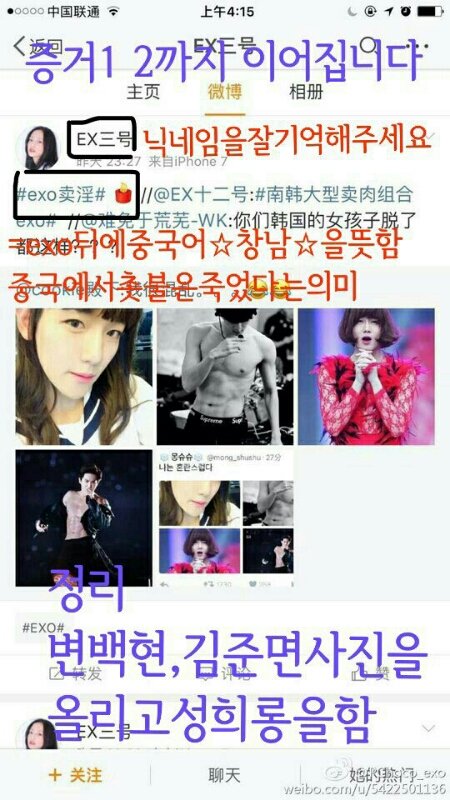 중국아미가 중국엑소엘 신상 털었다는 증거