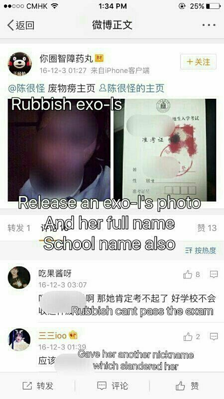 중국아미들이 중국엑소엘 개인정보 자꾸 캐내서 중국엑소엘들이 한국엑소엘들한테 알려서 시작 된 일임