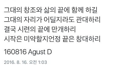 일단 저는 요즘 풀리는 일도 없고 사는게 너무 힘든 예비고2입니다. 자랑은 아니지만 초등학교 때부터 중3까지 항상 전교 1,2 등 해왔고 지금은 과학영재학교에 다니는 일종의 엘리트 코스를 밟아왔는데요, 영재학교 오니까 전국에서 날고 긴다는 애들이 모여서인지 나름 저희 지역에서 특목입시 하는 애들 사이에서 유명했던 저인데도 불구하고 제 자신이 너무 초라했습니다. 제가 이때까지 쌓아온 스펙은 아무것도 아니고, 나름 꽤 한다고 생각했던 공부도, 선천적으로 똑똑한 애를 따라갈 수가 없던사고요. 9년동안 천재 소리 듣고 살았던 제가 쪽지시험에서 D도 받아보고 진짜 죽고싶었습니다. 그래서 1년동안 진짜 인생 포기한 것처럼 F 안 받을만큼만 딱 공부하고 놀기만 했거든요. 맨날 강의 째고 빈 강의실 가서 자고..주위에선 기껏 영재학교 가서 한양대같은데 갈꺼냐는 소리 듣기도 했어요. 아무튼 진짜 자존감 바닥치는 삶을 살고있었어요. 그린데 우연히 p키캐스트에서 음악 추천하는 글의 댓글을 봤는데 방탄소년단의 Never mind가 있더라구요. 요새 워낙 방탄방탄 하니까 한번 들어나보자 하고 들어봤습니다. 그리고 펑펑 울었습니다. 가사 하나하나 너무 와닿았고..제 감정을 글로써 표현할 수가 없네요..진짜 너무 감명깊었고 진짜 이제 제대로 다시 공부를 시작해야겠다는 의지가 강하게 생겼습니다! 그래서 다시 공부도 시작했고 곧 AP 시험도 볼겁니다. 제 목표대학이 캘리포니아공대인데, 목표에 다시 도전할 수 있도록 저에게 불을 지펴준 방탄소년단에게 정말 고맙고 또 고맙습니다. 쓰다보니 글도 이상하고 많이 긴데, 한 마디로 요약하자면, 방탄소년단이 제 인생의 길잡이라는 겁니다ㅎㅎ방탄소년단 알아보니까 곧 컴백한다는데, 대박나길 빌게요!! 방탄소년단&팬분들 모두 파이팅!