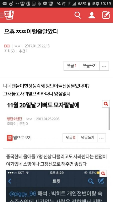 아ㅠ미친 늅년들 블베에서 엑톡언급하면