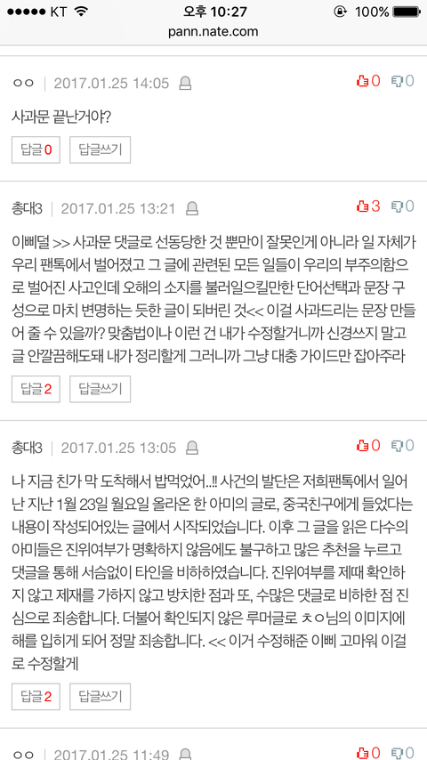 저게 총대3의 마지막 피드백이고 더이상 올라온 글 없어. 총대 1은 저 사과문 공지방에 아예 나타난적 없어 총대3혼자 계속 했어 다른이삐들이 도와주고