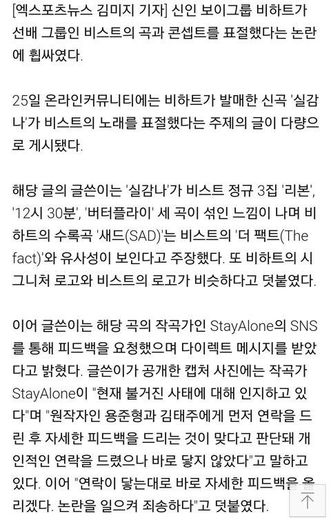 안무, 노래 표절 관련 피드백 올린다해놓고 묵묵부답