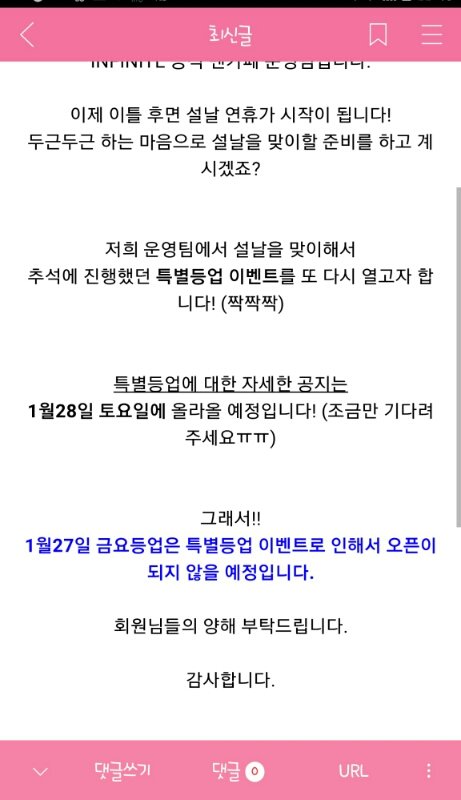 올리는거 문제되는거면 꼭 말해줘♡ 공카에서 이번주 28일에 특별 등업공지가 올라올거래 혹시나 어려워서 못한 토기들 기대해봐♡