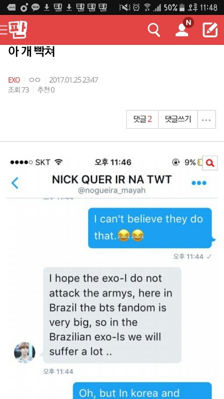 우리 브롸쥘 읍읍팬덤 커서...... 어머 그래? 근데 우리 한국중국엑소팬덤이 읍읍보다 정말 많이 커서.....ㅋㅋㅋㅋㅋㅋㅋㅋㅋ 얼마나 빡쳤으먄 ㅁ1친ㅋㅋㅋㅋ