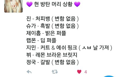 + 추측일 뿐이고 정확히 맞는다는 건 아냐! 나도 홈마들 아미들한테서 정보 들은 거라서 ,, 일단 태태 침침 낮누는 저 머리색 맞을 가능성 되게 높아