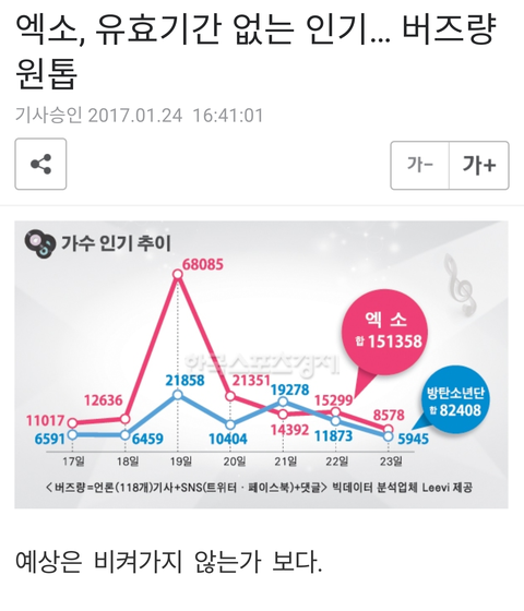 엑소, 유효기간 없는 인기… 버즈량 원톱
