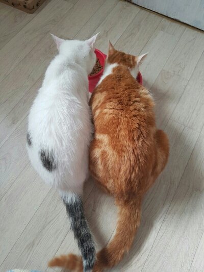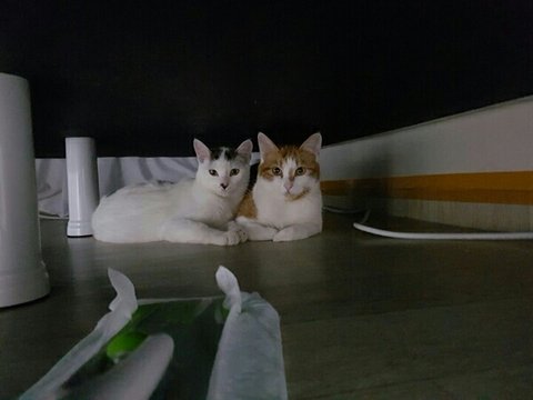 이 아이들의 첫주인은 레스토랑을 운영하며 가게안 작은 방에서 고양이 남매를 데려와 키웠는데 가게가 망하면 서 길위에 놓여지게 되었습니다.