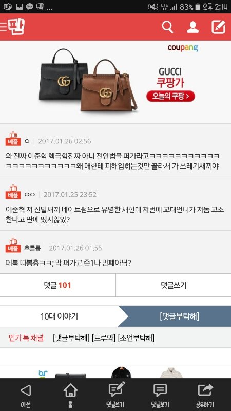 10대판에서 그렇게 욕먹고도 열심히 페북에 퍼나르고있네;
