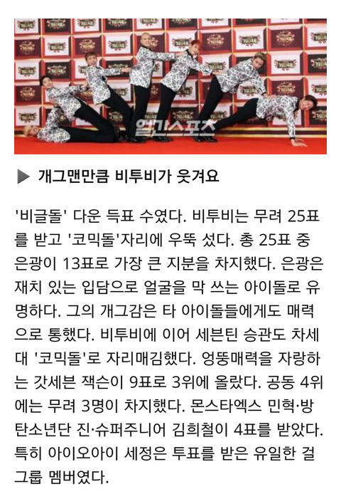 설특집 아이돌 100 명 설문 조사했는데 젤 웃긴 아이돌로 비투비ㅋㅋㅋ 역시 비글돌이다..