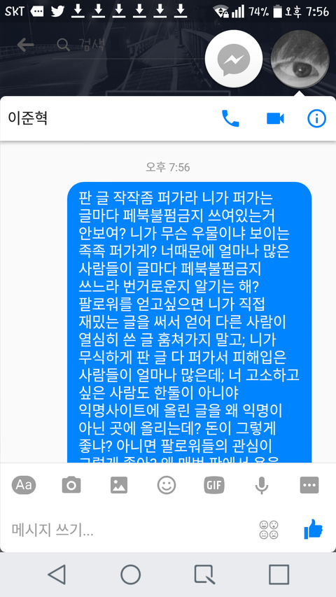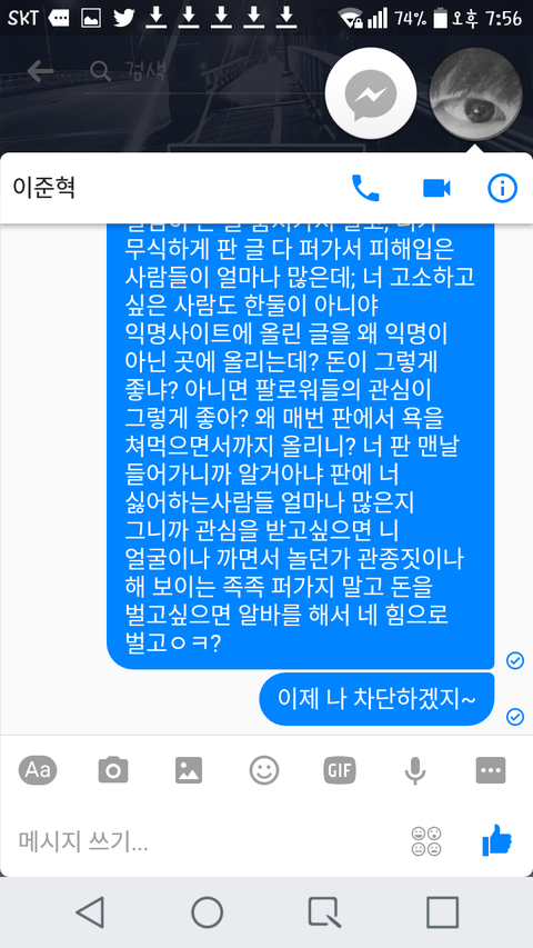 +)준혁아 이 글은 제발 퍼갔으면 좋겠다^^ 많은 사람들이 내 페메 내용을 보고 니가 얼마나 한심한 관종년인지 알아줬으면 좋겠어
