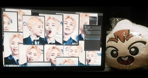 시우민 무릎에서 코~자는 탄이 팬아트>.<