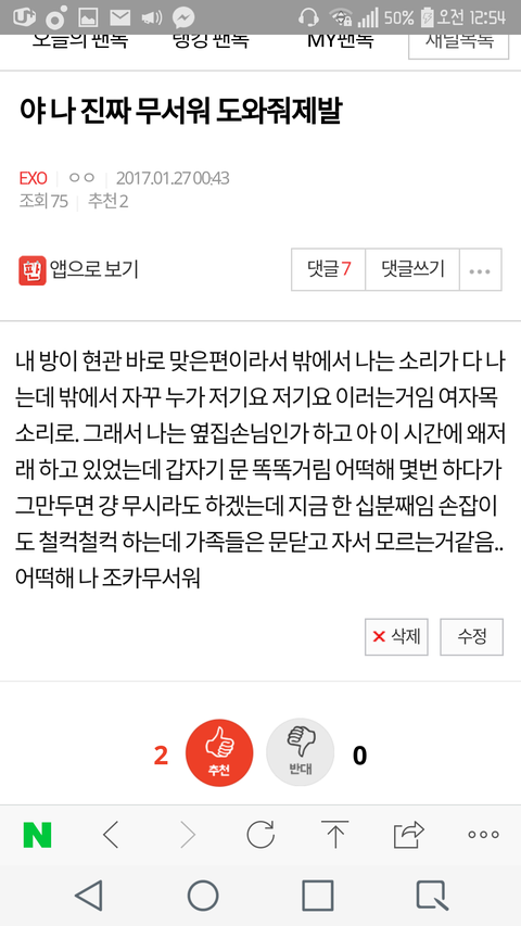 내일 씨씨티비 볼거고 일단 문 다 잠갔어ㅠㅠ 어떡해 조카 무서움..