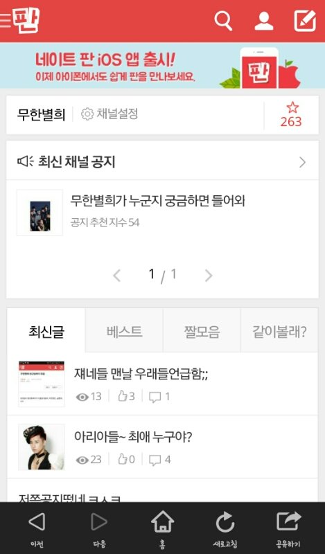 팬톡채널구경하다가 처음들어본 무한별희라는 채널이있는거임ㅋㅋㅋㅋㅋㅋㅋㅌㅋㅋㅋ그래서 응..?뭐지?얘네가뭔데 첨본는애들인데 즐찾수는 왤케많냐하면서 들어가봣는뎈ㅋㅋㅋㅋㅋㅋㅋㅋㅋㅋㅋㅋㅋㅋ