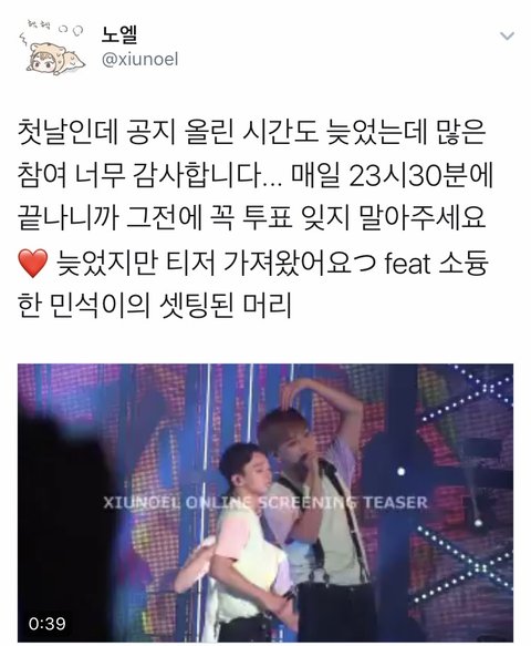 최애돌 투표 인증 제출하면 볼수 있는 노엘님 영상회 티저를 퍼왔어