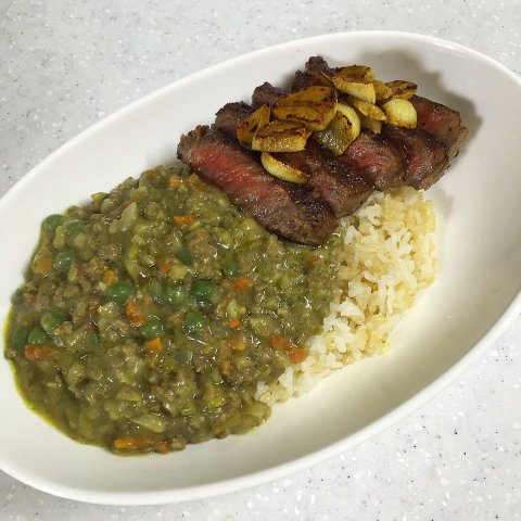 음..이커리는 제가 만든게 아니에여..이미 안들어진 커리를 그냥 데우기만 하고 스테이크만 구워서 올려준 거랍니다~~~혼신마켓의 스파이시 키마 커리에요~~궁금하시면 사먹어보시면 좋을것 같아요! 맛있어요!