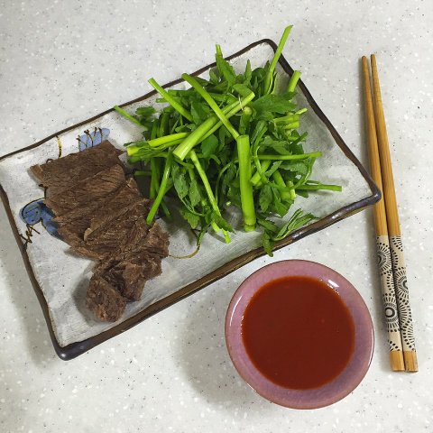 냉동실에서 잠들어있던 1+꾸릿살을 이용해서 삶아서 미나리랑 함께 먹었어요!