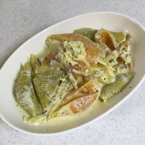 길죽한 스파게티면이 식상해서.. 이번엔 21탄의 배다뱀꼴나지 않기위에 소라모양의 콘킬리오니면을 이용해서 크림파스타를 해봤어요. 우유 200ml+블루치즈+다진마늘 한큰술이면 맛있는 크림파스타 소스가 완성!!!! 양파랑 느타리버섯만 넣었는데 맛있었답니다!
