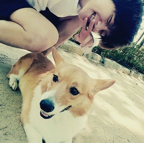 웰시코기 데리고 산책하는 변백현 이짤은 볼때마다설렘