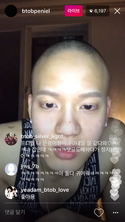 둘이 방송 끝나고 응가가 프니 방송하는데 와서 하트눌르고 댓글담!! 셋다 졸귀탱 ㅠㅠㅠㅠㅠ❤