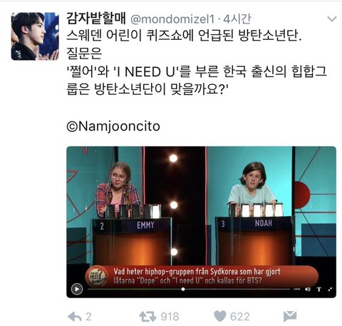 스웨덴 퀴즈쇼에서 애들 언급!!