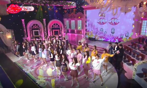 사진에 보이는 것과 같이 오프닝에 걸그룹 8팀이 단체로 공연하는게 있었는데 다른 팀보다 훨씬 선배인 EXID와 에이핑크가 맨 뒷줄에 보이지 않는 곳에 있음. 그래서 사람들이 병풍이냐고 벽이냐고 엄청나게 말을 많이 함... 무슨 후배 띄어주기 프로그램이냐고.