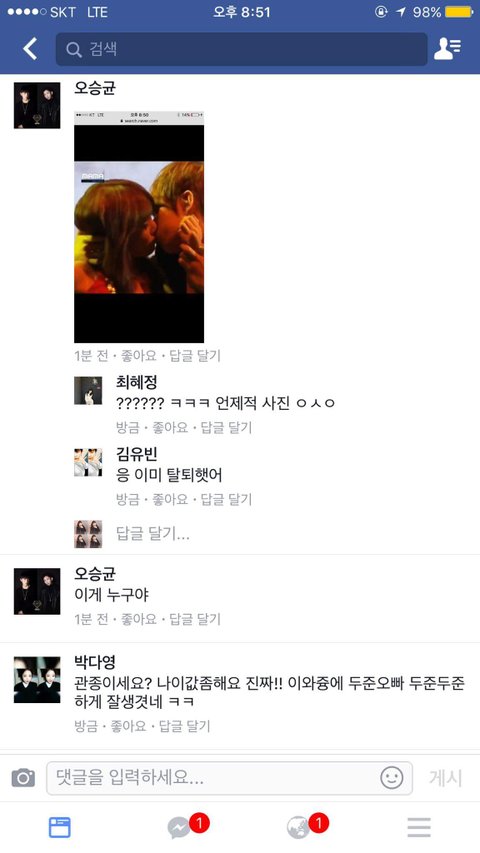 댓글에 또 올렸는데 장 혐 승 키스사진 올리면서 ㅋㅋㅋㅌㄱㄷㅋㅋㅋㅋ