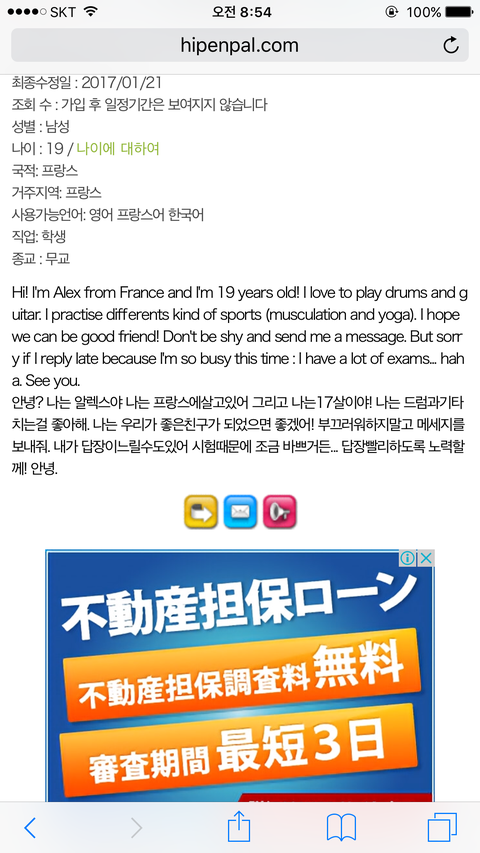 안녕펜팔하는데 말투 조카 설렘 ㅅㅂ