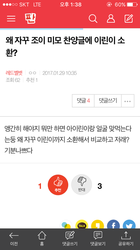 진짜 수십번 말한다 이것도 어그론데 너네 왜이렇게 병먹금 못해? 대답해주지 말라고; 하나하나 계속 대답해주니까 계속 오는거 아니냐고ㅋㅋㅋㅋㅋㅋㅋㅋㅋㅋ병먹금좀 해 팬톡 말아먹고 싶냐?