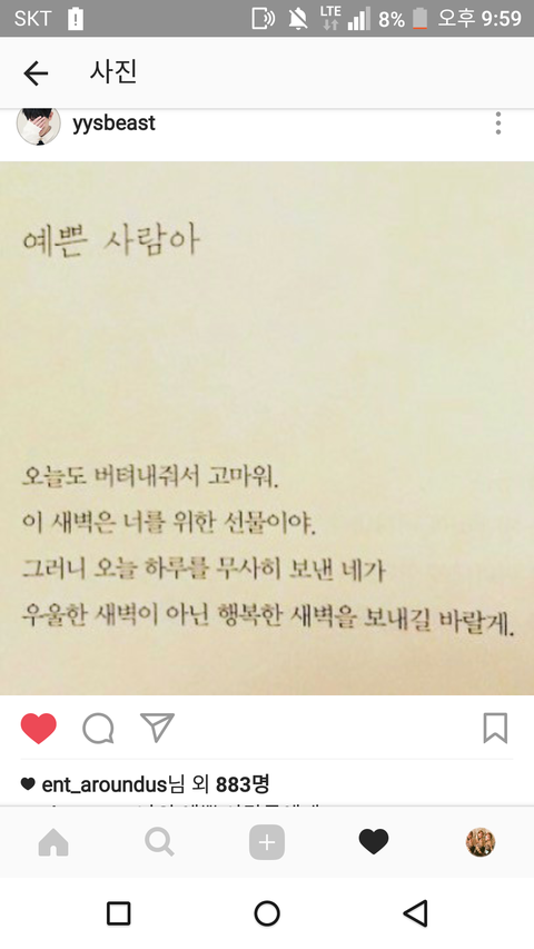 양요섭 다 알고 또 위로해주고.. 뷰티라서 행복합니다.