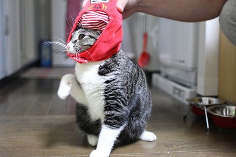 협박이 통하지 않자 모모는 작전을 변경합니다. "집사야, 내 머리에 얹어진 이 불편한 모자를 벗겨주지 않으련??" 눈빛이 너무 아련해서 벗겨주지 아니할 수 없더군요. 한 번만 더 도전을 해보고 싶어서 이번엔 나나로 타깃을 변경했습니다.