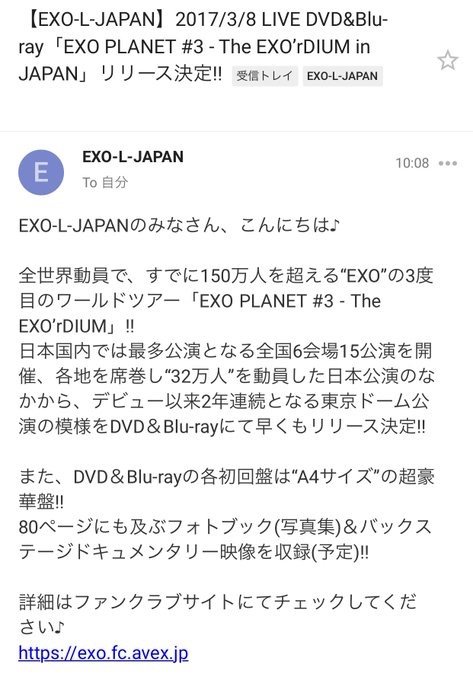 2017/3/8 「EXO PLANET #3 - The EXO’rDIUM in JAPAN」릴리즈 결정. 초회한정반은 A4사이즈. 초회한정반DVD 6,696엔/Blu-ray 7,776엔. 통상반DVD 4,860엔/Blu-ray 5,940엔.